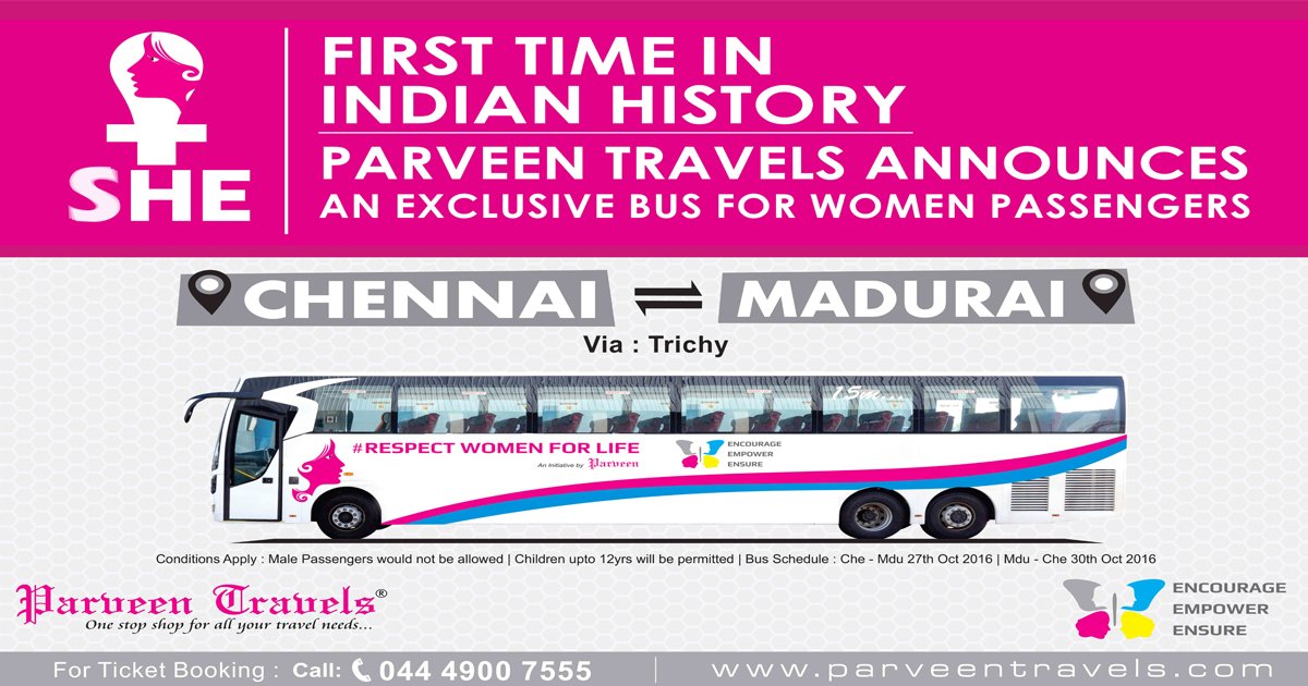 Respect Women For Life Concept From Parveen Travels With Their New 15 M Benz In Chennai To Madurai Route Tamilnadu Private Buses - I have booked a two tickets for my family from coimbatore to trichy by yesterday 28/02/2020 in parveen travels boarding point.